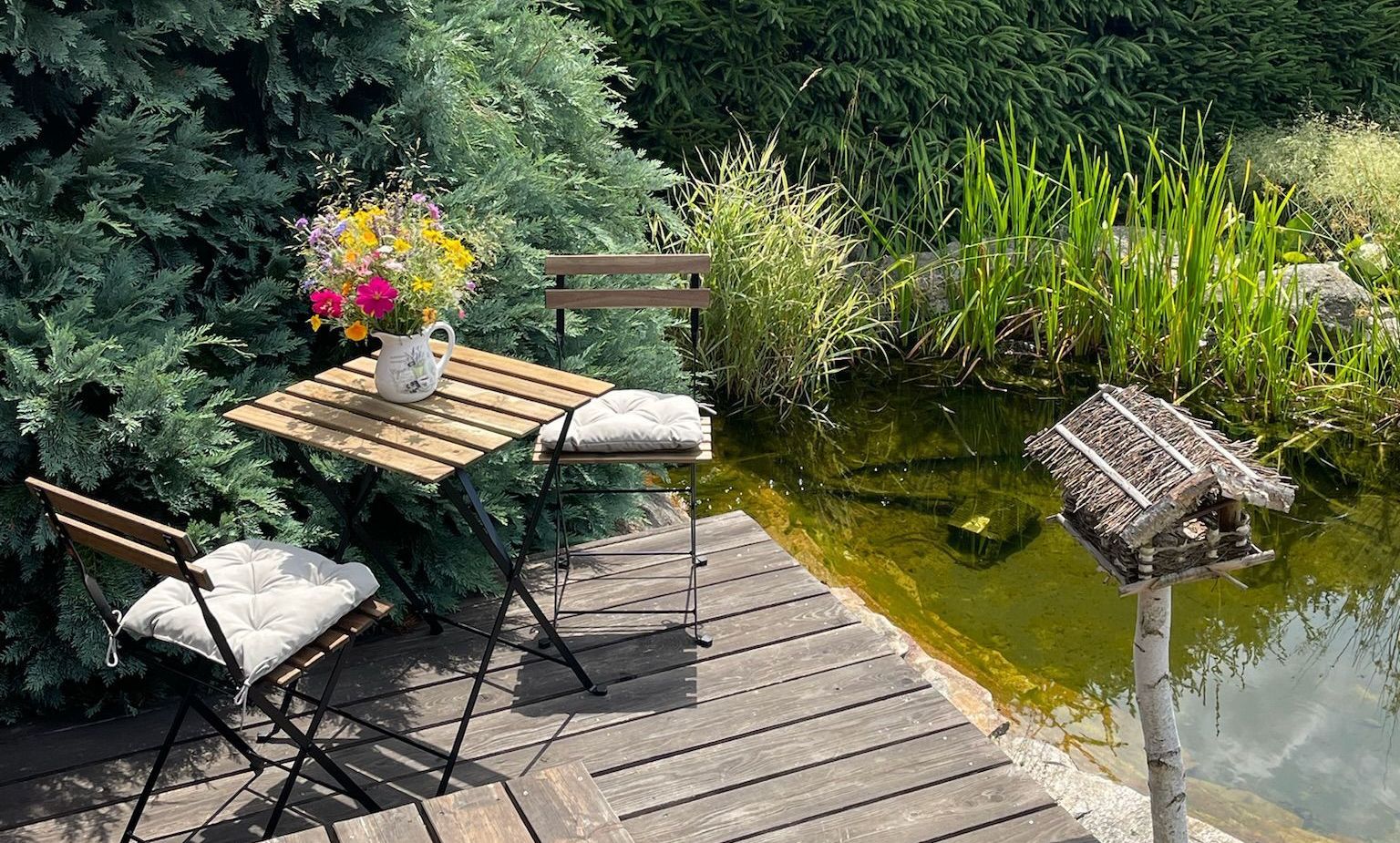 Osvěžení v přírodním jezírku - Pro osvěžení během horkých letních dnů je tu koupací jezírko s křišťálově čistou vodou. Vychutnejte si osvěžující plavání nebo klidný večerní relax, kdy je okolí ponořeno do ticha.